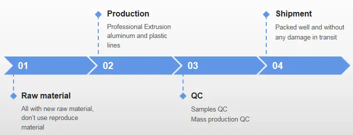 Sicut DUCTUS Aluminium Profile et DUCTUS plastic profile professionalem opificem, JE semper intendunt productum absolute ab aluminio et materia plastica rudis ad extrusionem lineae productionis, ex speciminibus qualitatum dominium ad massam productionis dominii, a valido perfecta sarcina ad totum cor serviendum.